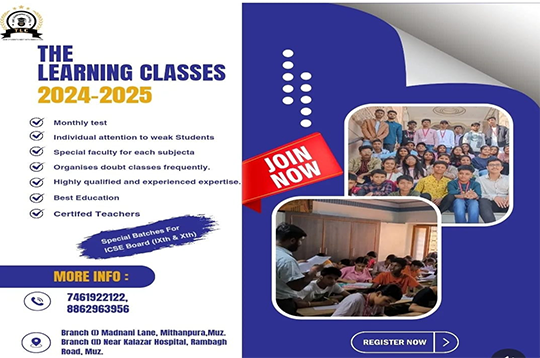 Welcome to The Learning Classes, a premier coaching center dedicated to fostering academic excellence and personal growth. Established in 2020 by Mr. Sujeet Kumar, we are conveniently located at Madnani Lane, Mithanpura, Muzaffarpur. Our center was founded with a clear vision: to provide high-quality education and empower students to achieve their full potential.